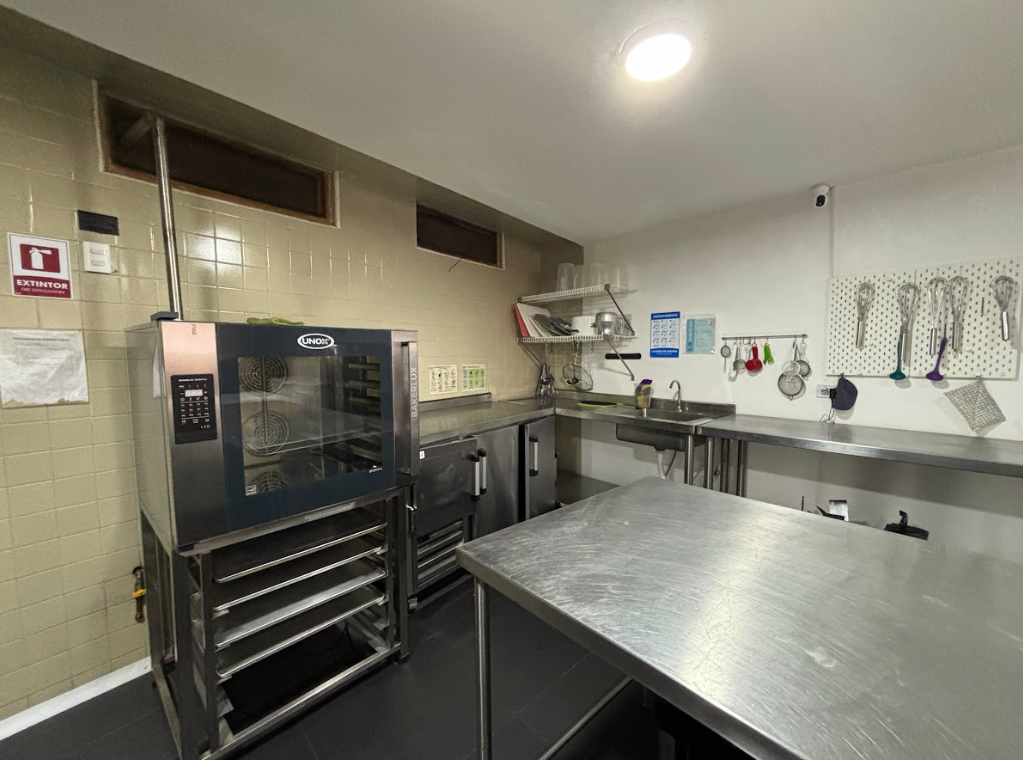 Cocina industrial equipada, ideal para proyectos de pastelería o repostería. Ubicada dentro de un café de especialidad en el corazón de Bogotá, cerca a la Carrera 7 y Calle 72.
